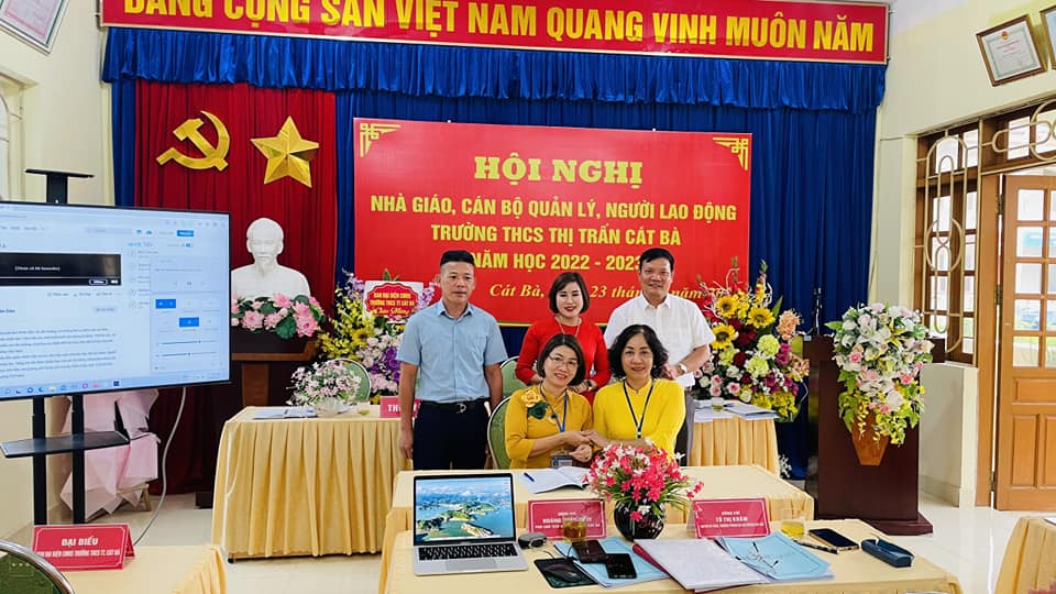 Thực hiện nhiệm vụ năm học 2022-2023, Hội nghị nhà giáo, CBQL, NLĐ của trường THCSTTCB đã tổ chức thành công tốt đẹp. Đến dự hội nghị có đồng chí Tô Thị Khâm - Huyện ủy viên, Trưởng phòng GD&ĐT Cát Hải, đồng chí Hoàng Xuân Thủy - Phó chủ tịch UBND thị trấn Cát Bà.