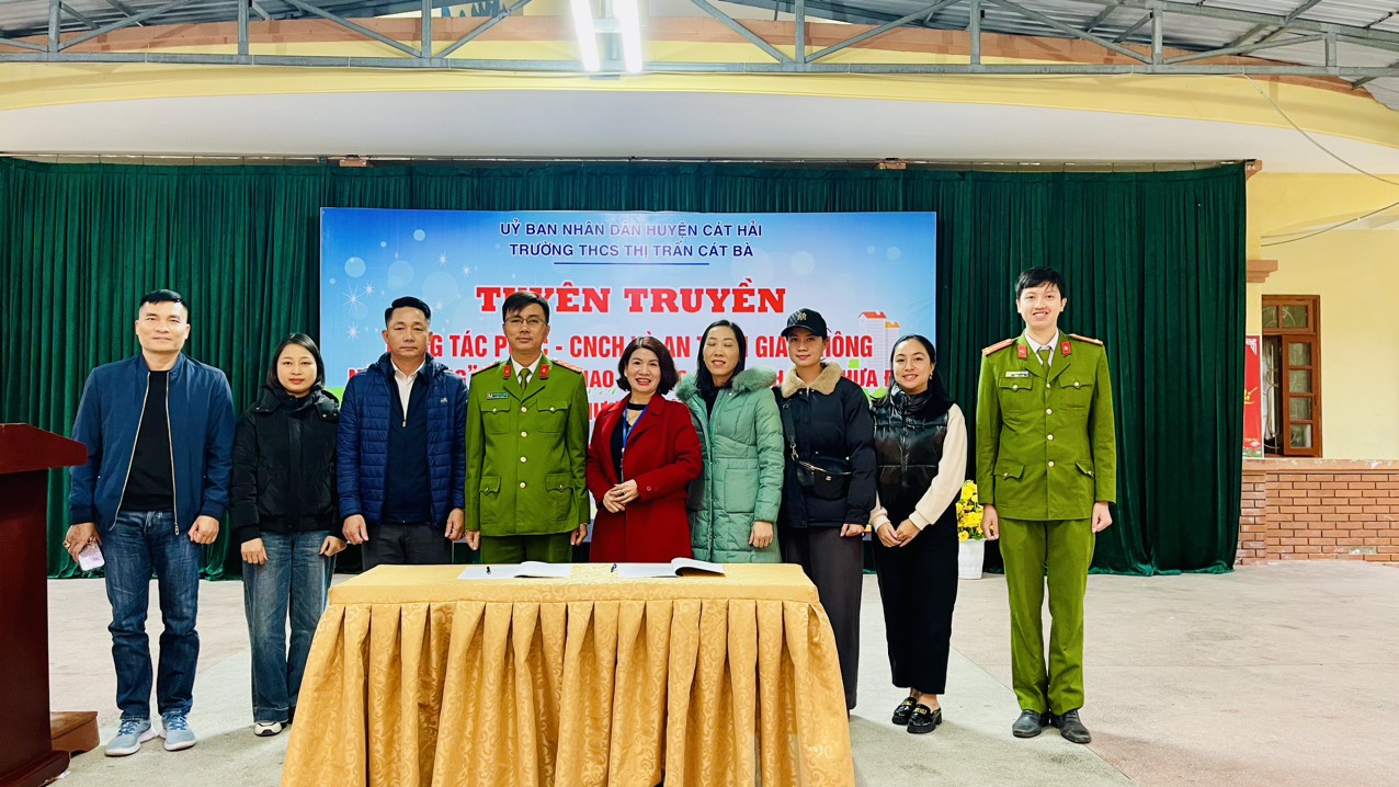 Nhằm nâng cao nhận thức và ý thức chấp hành pháp luật về Phòng cháy chữa cháy-Cứu nạn cứu hộ, an toàn giao thông đường bộ trong cộng đồng, đặc biệt là đối tượng học sinh, Trường THCS thị trấn Cát Bà đã phối hợp với Công an thị trấn Cát Bà tổ chức buổi tuyên truyền pháp luật về Phòng cháy chữa cháy-Cứu nạn cứu hộ, an toàn giao thông, nói “Không” với việc giao xe cho học sinh khi chưa đủ điều kiện điều khiển phương tiện tham gia giao thông”.