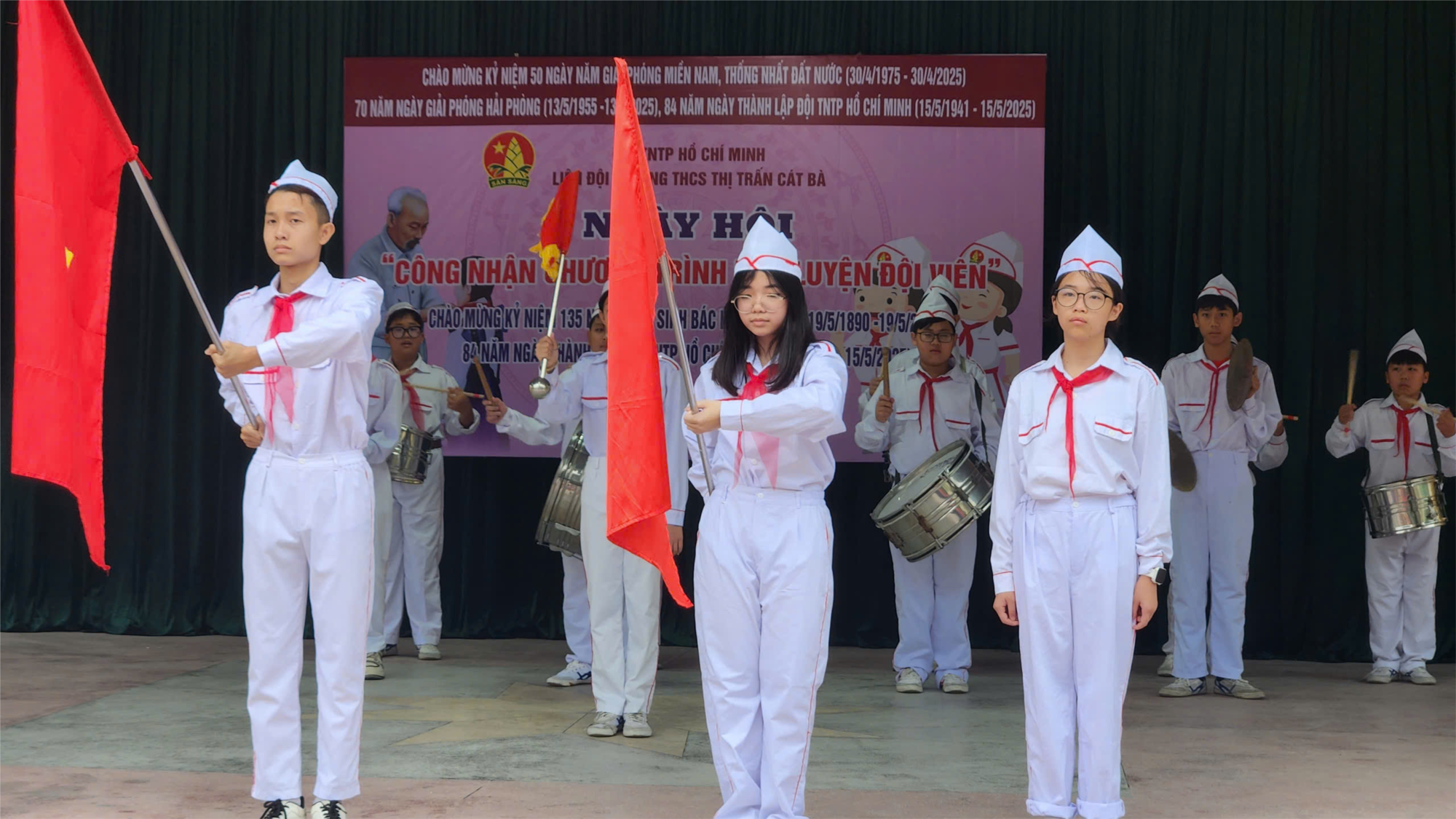 Thiết thực chào mừng kỷ niệm 135 năm ngày sinh Bác Hồ kính yêu (19/05/1890-19/05/2025); 84 năm ngày thành lập Đội TNTP Hồ Chí Minh (15/5/1941-15/5/2025), 70 năm ngày Giải phóng Hải Phòng (13/05/1955-13/05/2025). Nhằm giáo dục tổng hợp, mang tính định hướng gồm những kiến thức về truyền thống lịch sử dân tộc; truyền thống Đoàn TNCS Hồ Chí Minh, Đội TNTP Hồ Chí Minh; về nghiệp vụ công tác Đội; kiến thức về môi trường, sức khoẻ, thể dục thể thao,... giúp cho đội viên rèn luyện phát triển toàn diện, trở thành người Đoàn viên TNCS Hồ Chí Minh. Tạo sân chơi vui tươi và bổ ích cho đội viên, phát huy tính năng động, sáng tạo và ham học hỏi, khám phá của lứa tuổi học sinh THCS, sáng 15/5/2025 Liên đội Trường THCS thị trấn Cát Bà tổ chức “Ngày hội công nhận chương trình Rèn luyện Đội viên” năm học 2024 – 2025.