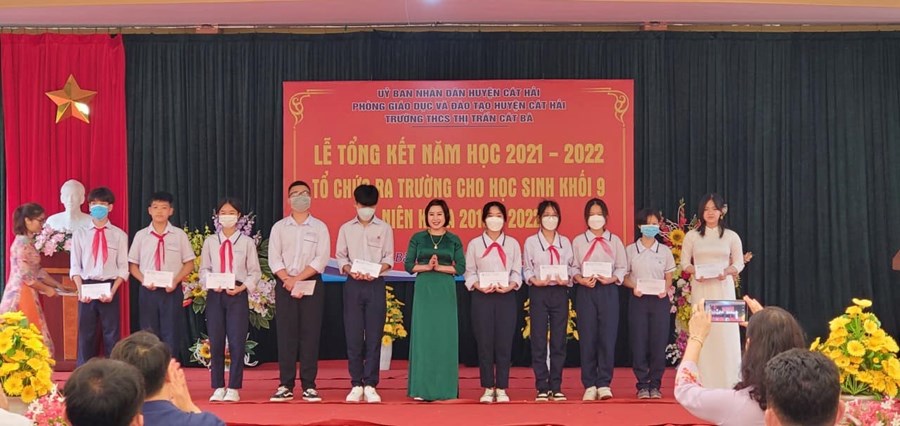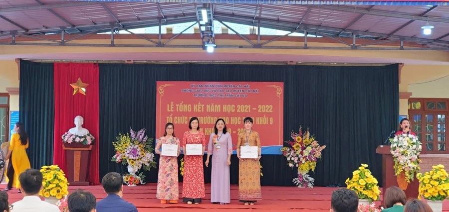 Trung tâm VH-thông tin và thể thao huyện đã đến dự để động viên, chúc mừng thành tích của thày và trò nhà trường đồng thời trao thưởng cho HS, GV đạt thành tích XS trong năm học 2021-2022.